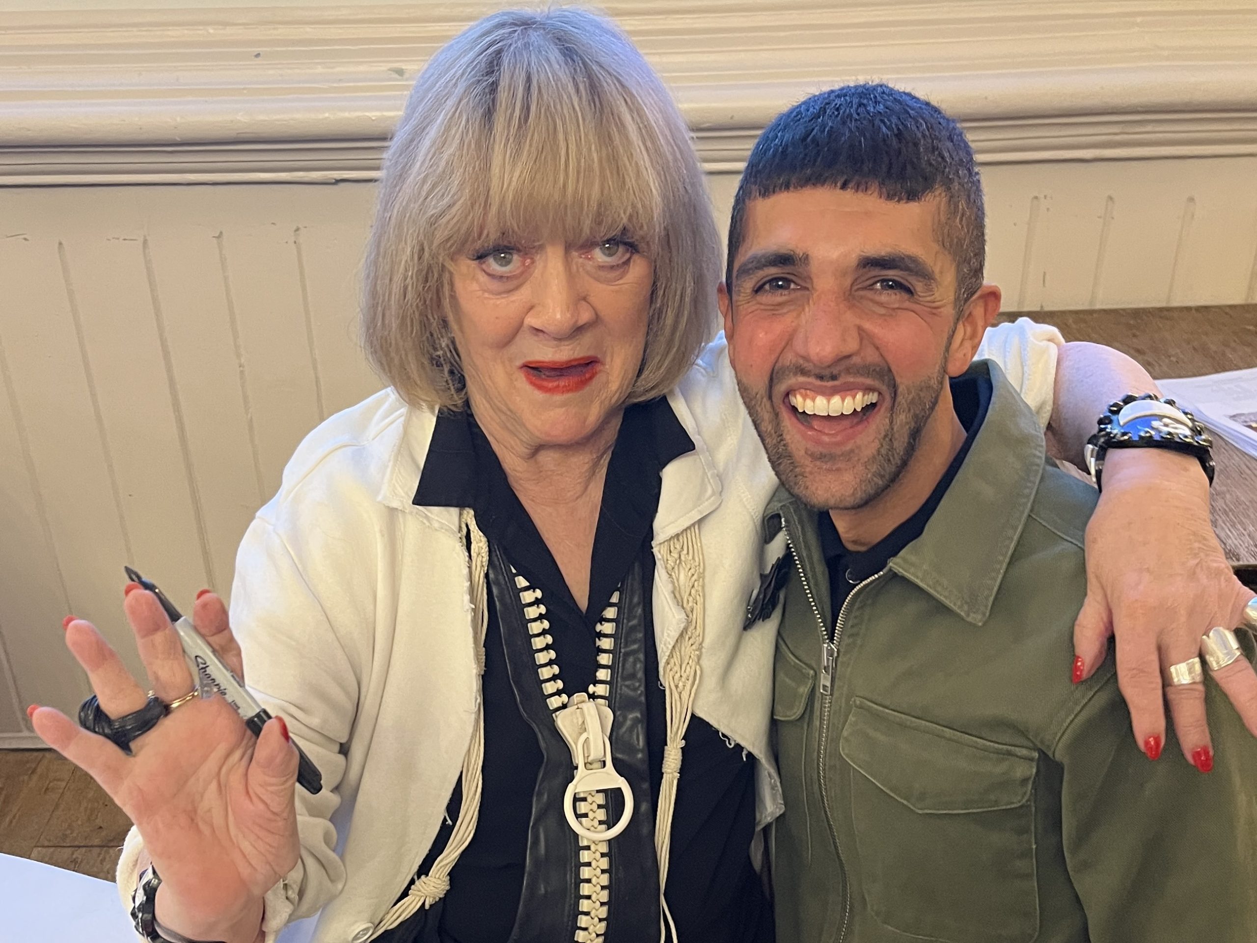 Ajay sharing a laugh with the legendary actress and author Amanda Barrie.